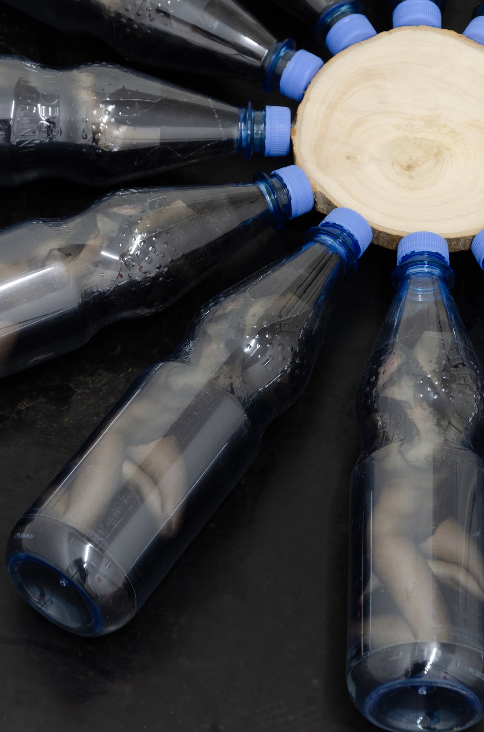A few props also indicate the role played by each character: a cart for Bleue the rag woman, a flute for Christine Labourgue the musician and glasses and bottles for Eric Chales the drinks vendor. Most of the time they are on stage, or at least in a situation where they are trying to entice others to join them, to reduce the distance between them. Angélique Aubrit and Ludovic Beillard are constantly working on and expanding this story, the back-and-forth between the characters, movements of attraction and repulsion. When the characters are activated, in performances or films, their heavy, cumbersome gestures seem to be executed as if in slow motion. Each move towards or away from them is experienced in a surreal duration as if suspended in a temporal loop.