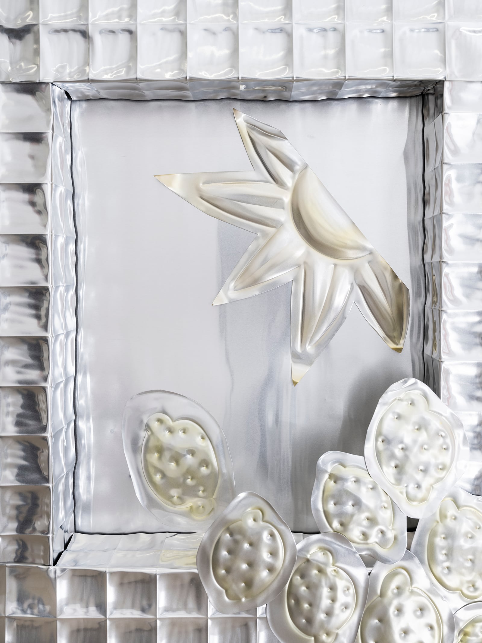 This show is a tribute to space and the bodies of this world co-existing simultaneously asleep and awake, brilliant, bright and silent and dark, heavy and light, risen from foam becoming as hard as the hardest of stones.